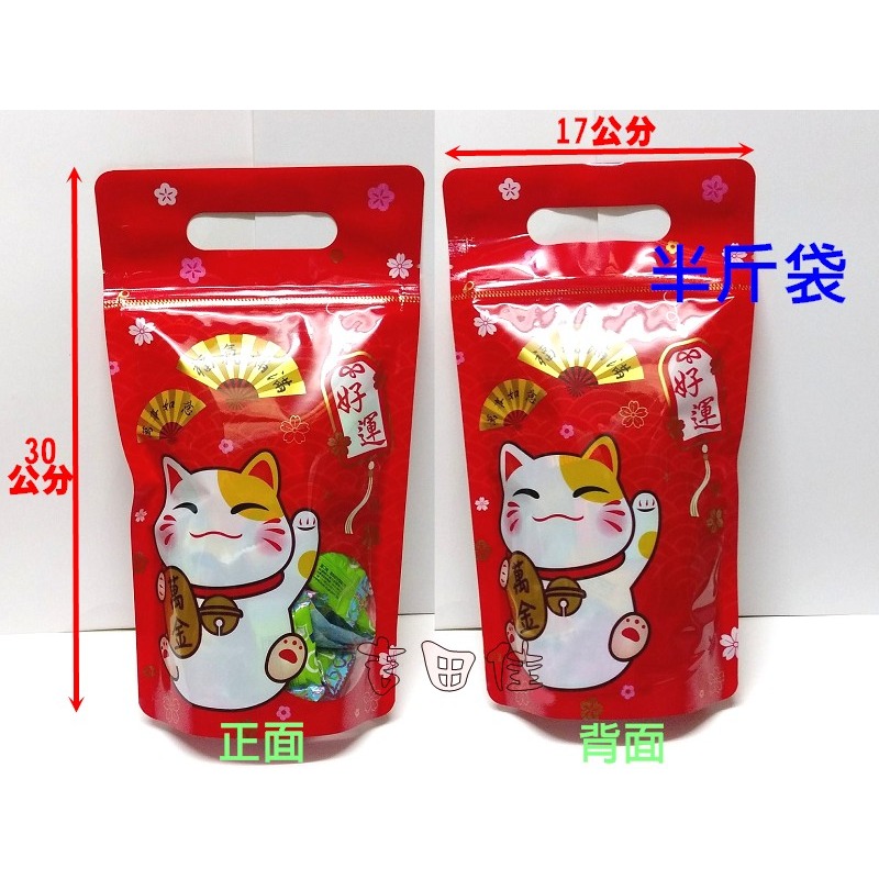[吉田佳]B512178,千万兩招財貓手提夾鏈袋28*18,半斤袋,牛軋糖包裝袋(50入/包),彩色立體夾鍊袋,手提夾鏈