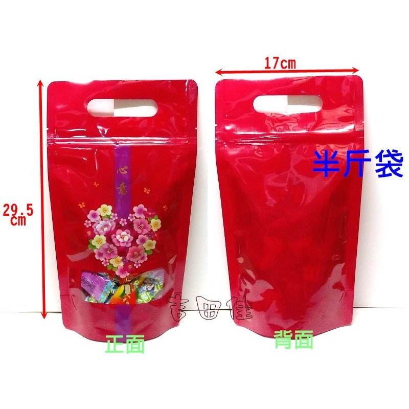 [吉田佳]B512179,心意手提夾鏈袋17*29,半斤袋,牛軋糖包裝袋(50入/包),彩色立體夾鍊袋,手提夾鏈袋