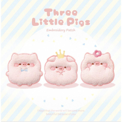 客秋皮~ 三隻小豬 童話故事 INS 布藝刺繡 衣服裝飾 熨斗貼 布貼 燙布貼 刺繡貼紙 背膠式繡布貼 補丁 刺繡貼