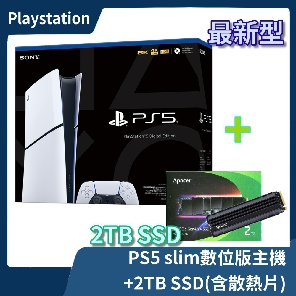 【容量升級】全新 PS5 SLIM 數位版主機 薄型機 搭配 Apacer 2TB SSD 固態硬碟含散熱片【一樂電玩】