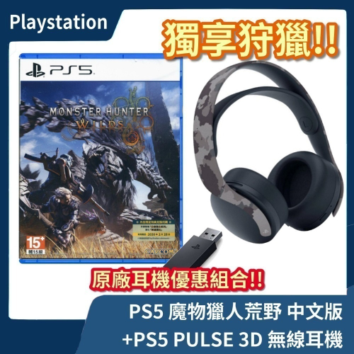 【獨享狩獵必備】PS5 魔物獵人 荒野 中文版+PS5 3D PULSE 耳罩式耳機 深灰迷彩 WILDS【一樂電玩】