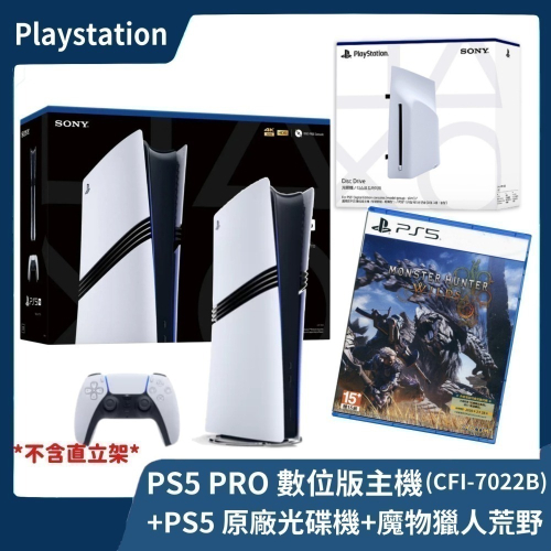 【完美狩獵】全新公司貨 PS5 PRO 2TB 數位版主機+ 光碟機 +魔物獵人 荒野 中文版 光碟版 現貨【一樂電玩】