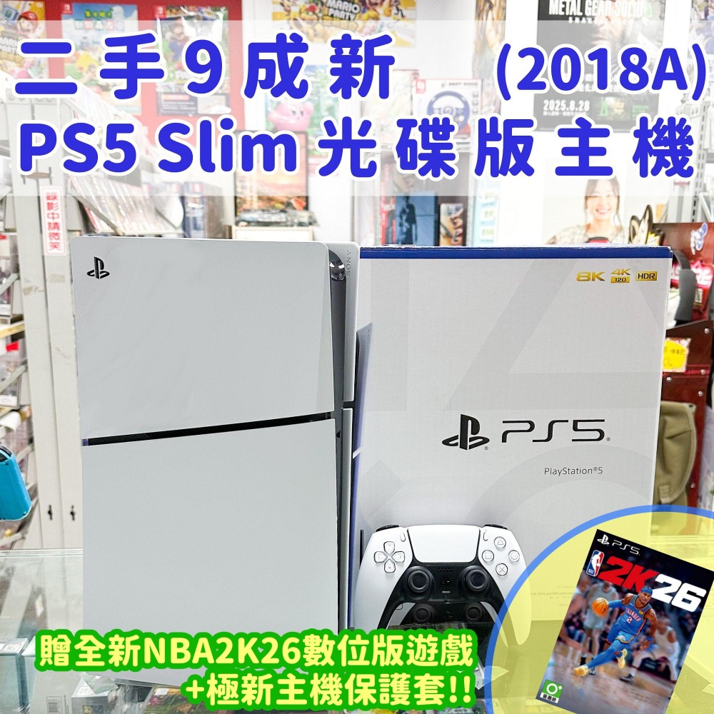 【優質二手電玩】9成新 PS5 Slim 光碟版 1TB 白色主機 2018A 再贈 NBA 2K26數位版【一樂電玩】