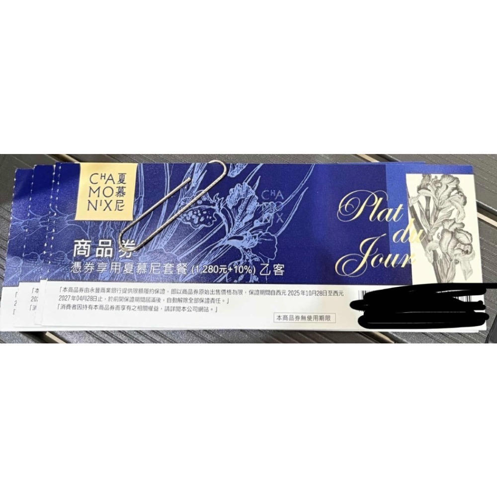 夏慕尼餐卷,原價1280+10%服務費,特價優惠中(全新票卷,無需補差額)