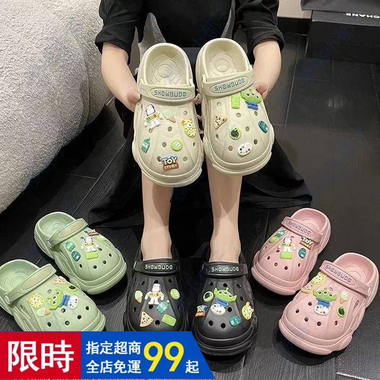 【現貨速發】2023新款 洞洞鞋女夏外穿踩屎感可愛卡通情侶 增高厚底兩穿涼拖鞋男