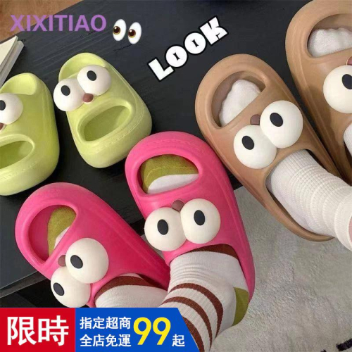 【限時特賣】🔥趣味大眼睛多巴胺女孩可愛拖鞋女厚底細細條夏季踩屎感EVA厚底居家涼拖外穿女一字拖出街穿搭沙特鞋 情侶拖鞋