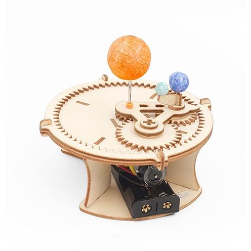 【W先生】科技小製作 木製 太陽 地球 月亮 三球儀 太陽系 星球 行星儀 科學玩具 益智 教育 DIY 拼裝 自行組裝