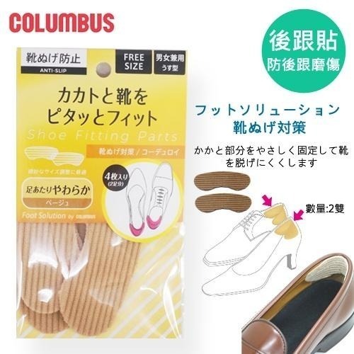 日本製COLUMBUS 燈芯絨防磨防咬腳後跟貼 鞋墊 防磨 防滑 止滑 鞋墊 磨腳 柔軟 舒適 黏貼 保健 磨擦-現貨