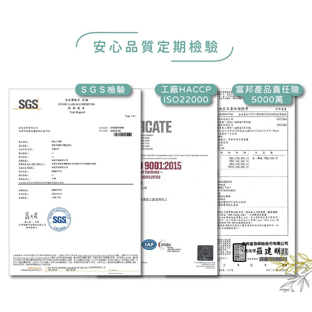 營養標示:每份熱量213Kcal、蛋白質6.0g、脂肪6.0g、飽和脂肪0.6g、反式脂肪0g、碳水化合物9.0g、糖3.0g、鈉36mg