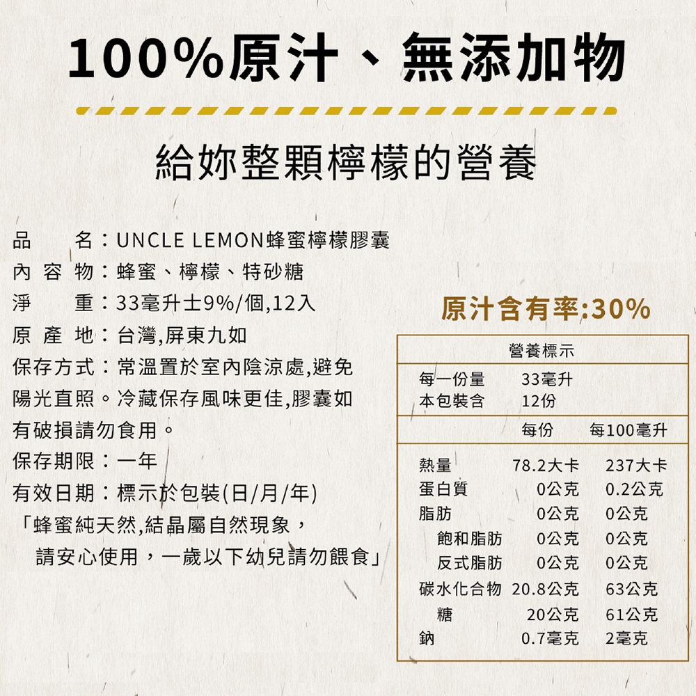品 名:UNCLELEMON蜂蜜檸檬膠囊