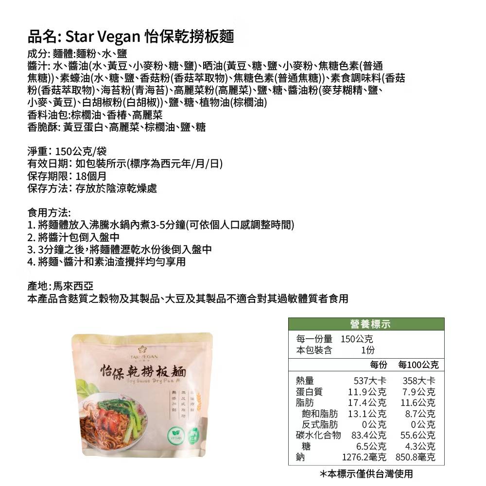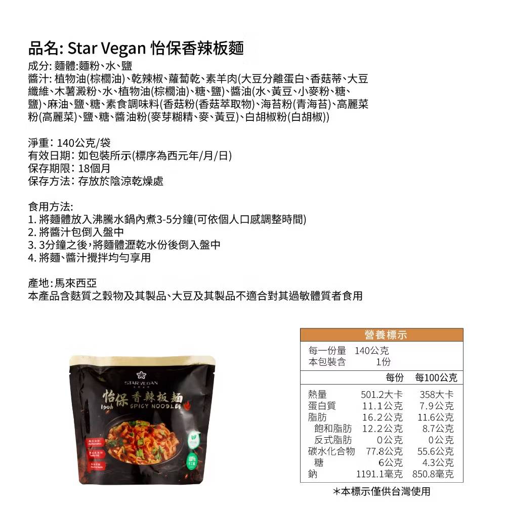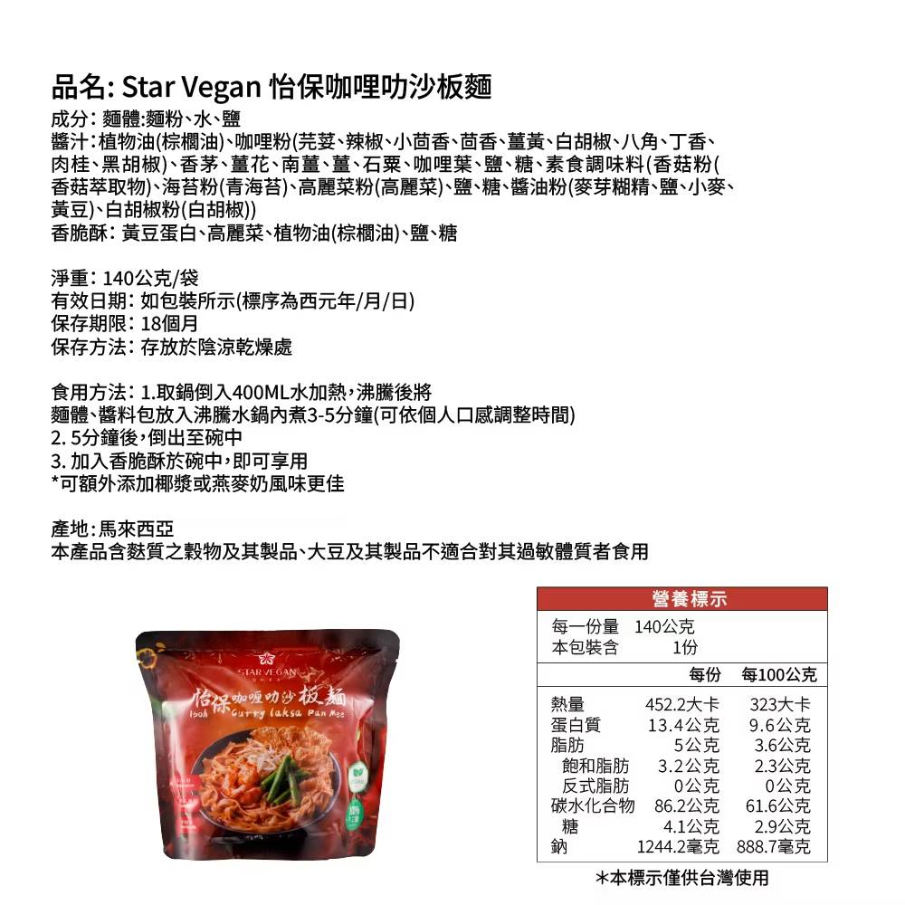 【Star Vegan】怡保乾撈板麵|怡保香辣板麵|怡保咖哩叻沙板麵 140g袋 全素 購滿地