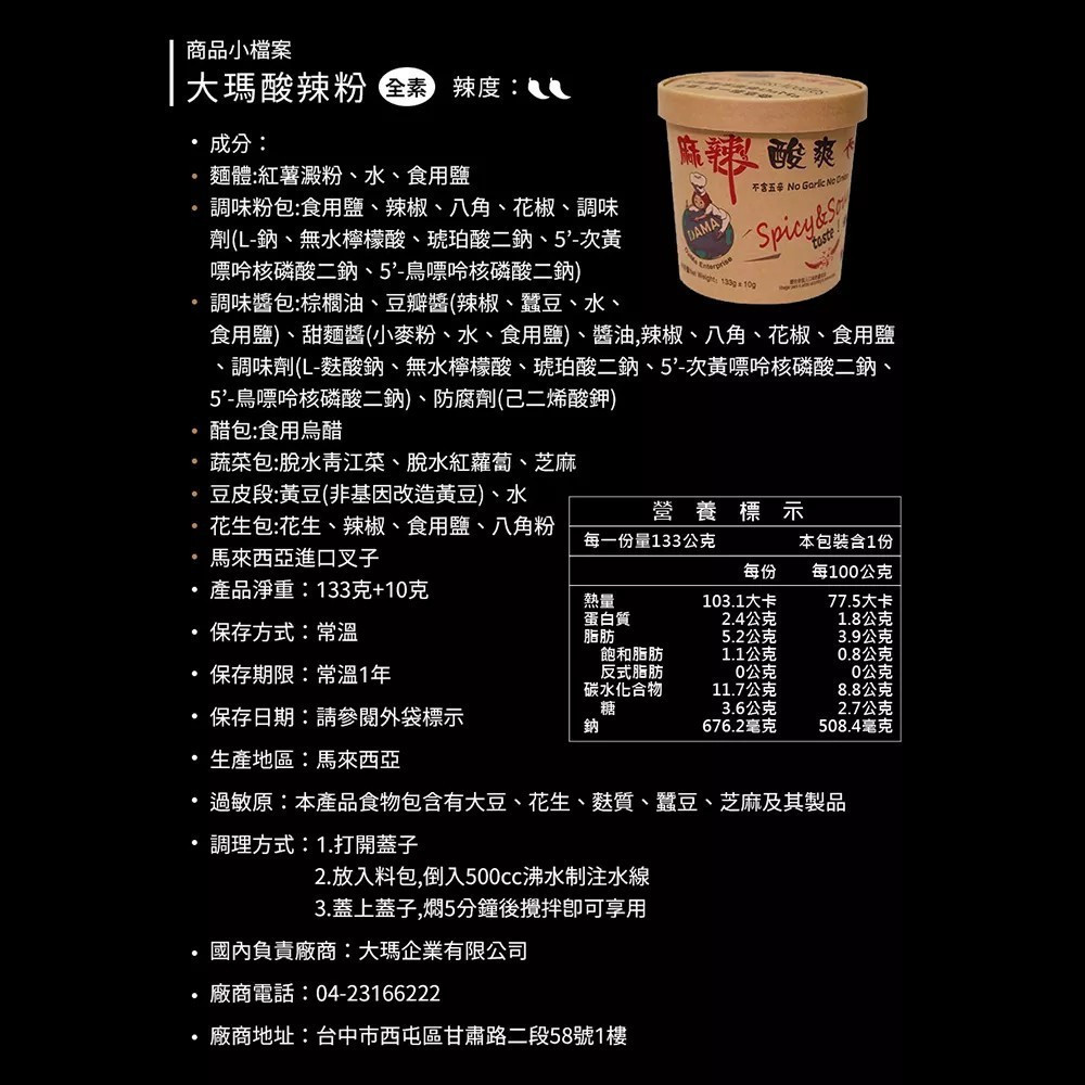 調味粉包:食用鹽,辣椒,八角,花椒 ,調味劑(L-鈉,無水檸檬酸,琥珀酸二鈉,5’-次黃嘌呤核磷酸二鈉,5’-鳥嘌呤核磷酸二鈉)