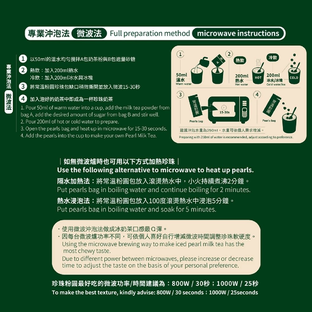 加入150ml冰水或熱水成為一杯珍珠奶茶。