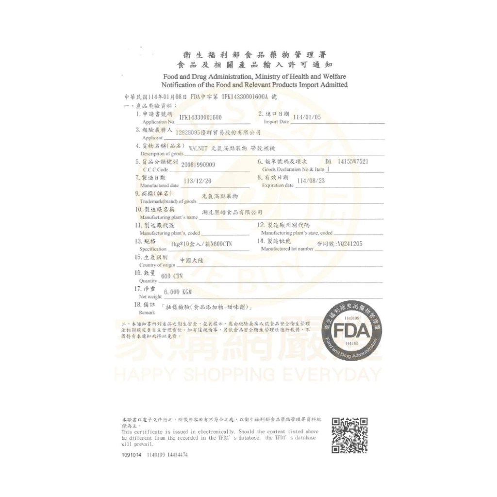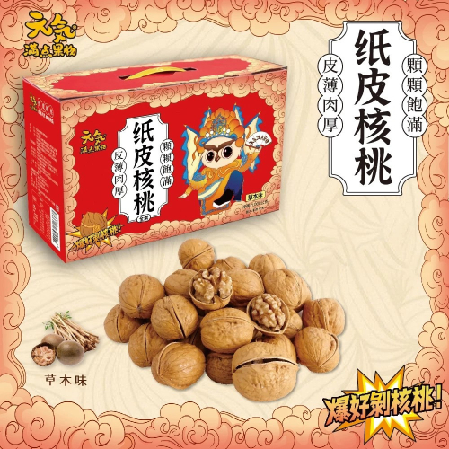 成份:核桃、食鹽、砂糖、醋磺內酸鉀(甜味劑)、蔗糖素(甜味劑)、紐甜(甜味劑)、木瓜蛋白醇、L-麩酸鈉、草本萃取物(水、羅漢果、甘草)、香料