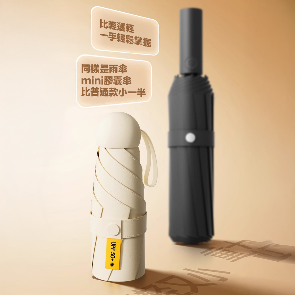 這款口袋傘晴雨兩用、黑膠防曬UPF50+