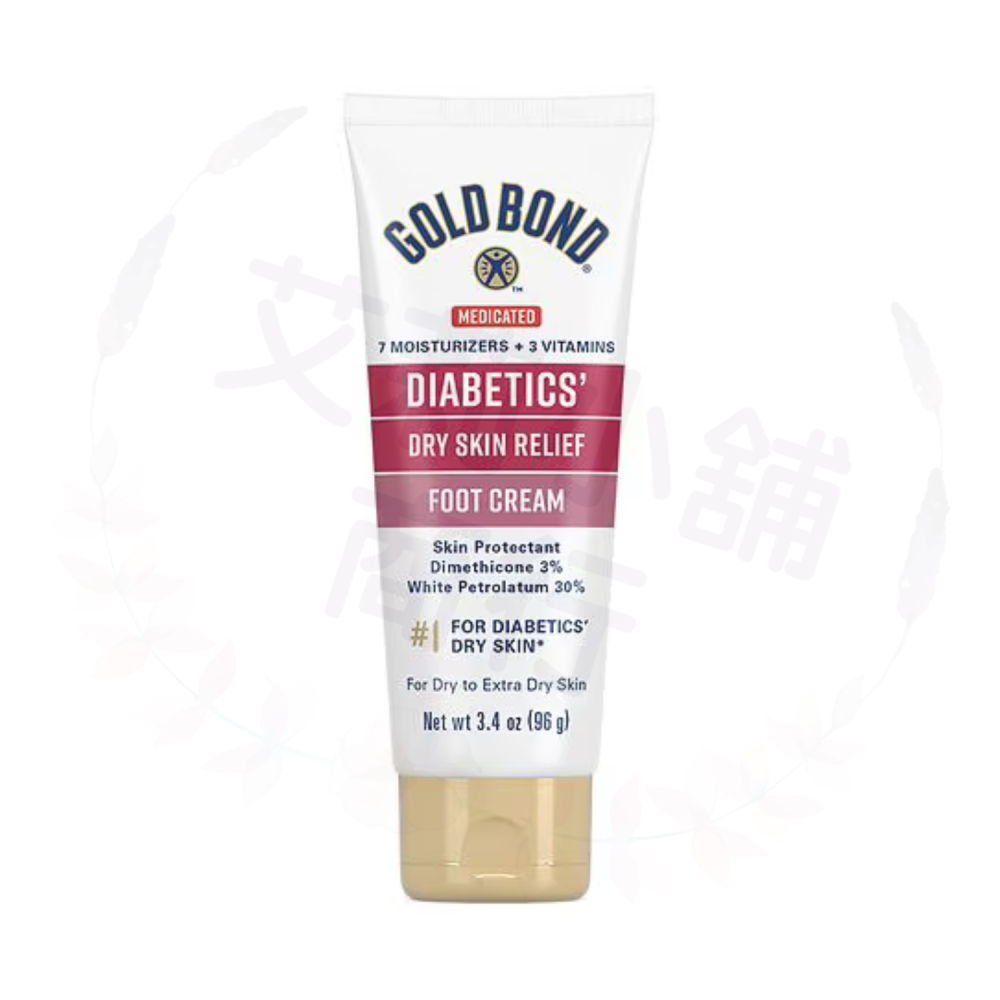 滋潤乾燥、脫皮、粗糙的糖尿病肌膚。使用 Gold Bond Diabetics 乾性肌膚舒緩藥用足霜,即可獲得持續一整天的舒緩和保濕效果。它能撫平粗糙的肌膚,並深入滲透肌膚表層 10 層。 90% 的糖尿病患者在使用 1 小時內就感受到肌膚的顯著改善。