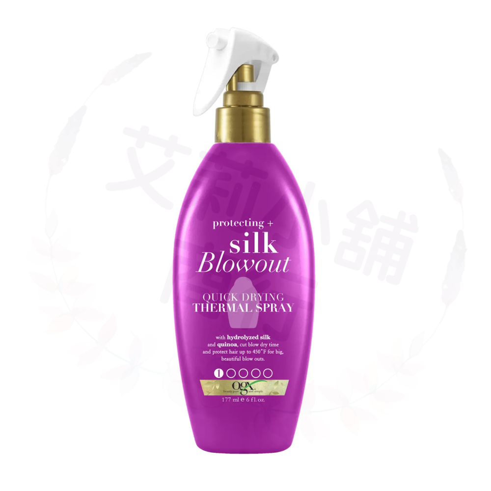 OGX 絲滑柔順速乾熱保護噴霧,讓扁塌暗啞的秀髮瞬間煥發光澤,如絲般順滑,性感迷人。這款噴霧可抵禦高達 450°F 的高溫,有效防止熱損傷。其蘊含水解蠶絲和藜麥等獨特成分,幫助秀發快速打底,打造閃亮柔順的造型。使用方法:吹乾前,將噴霧噴於濕髮上,從髮根至髮梢,即可縮短吹乾時間,輕鬆應付濃密毛躁的髮質。之後,依照個人喜好進行造型。這款打底噴霧還能有效預防各種髮質的分岔。使用 OGX 絲滑柔順速乾熱保護噴霧,打造完美蓬鬆造型,盡情甩動秀發,展現迷人風采。