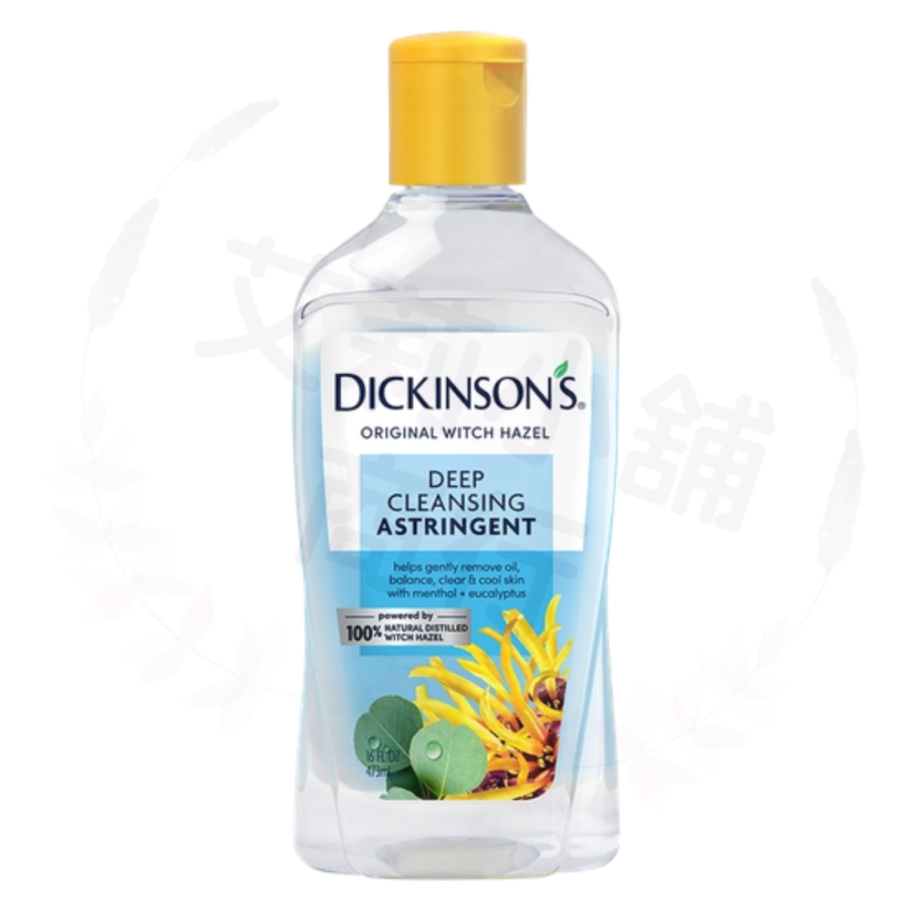 Dickinson's 深層清潔收斂水蘊含天然蒸餾金縷梅和清爽桉樹精華,可深層清潔毛孔,去除污垢、彩妝和多餘油脂。這款清爽配方讓肌膚清涼舒爽,讓肌膚煥然一新。本產品採用「從植物到瓶裝」工藝精製而成,採用可持續採摘、經有機認證的金縷梅蒸餾而成,純淨高效。不含色素、硫酸鹽、對羥基苯甲酸酯、鄰苯二甲酸酯和麩質。