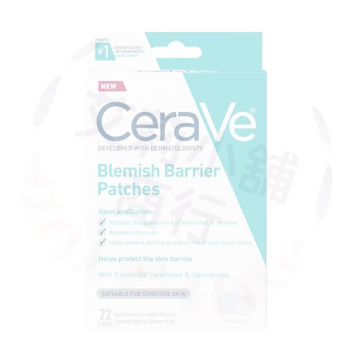 CeraVe 祛痘屏障貼片是首款也是唯一一款蘊含三種必需神經醯胺和菸鹼醯胺的水膠體祛痘貼,有助於舒緩肌膚,並在使用後立即淡化各種痘印。這款祛痘貼由皮膚科醫師研發,經臨床驗證,最快3小時即可吸收油脂,保護脆弱的肌膚屏障,降低痘印形成的風險。
