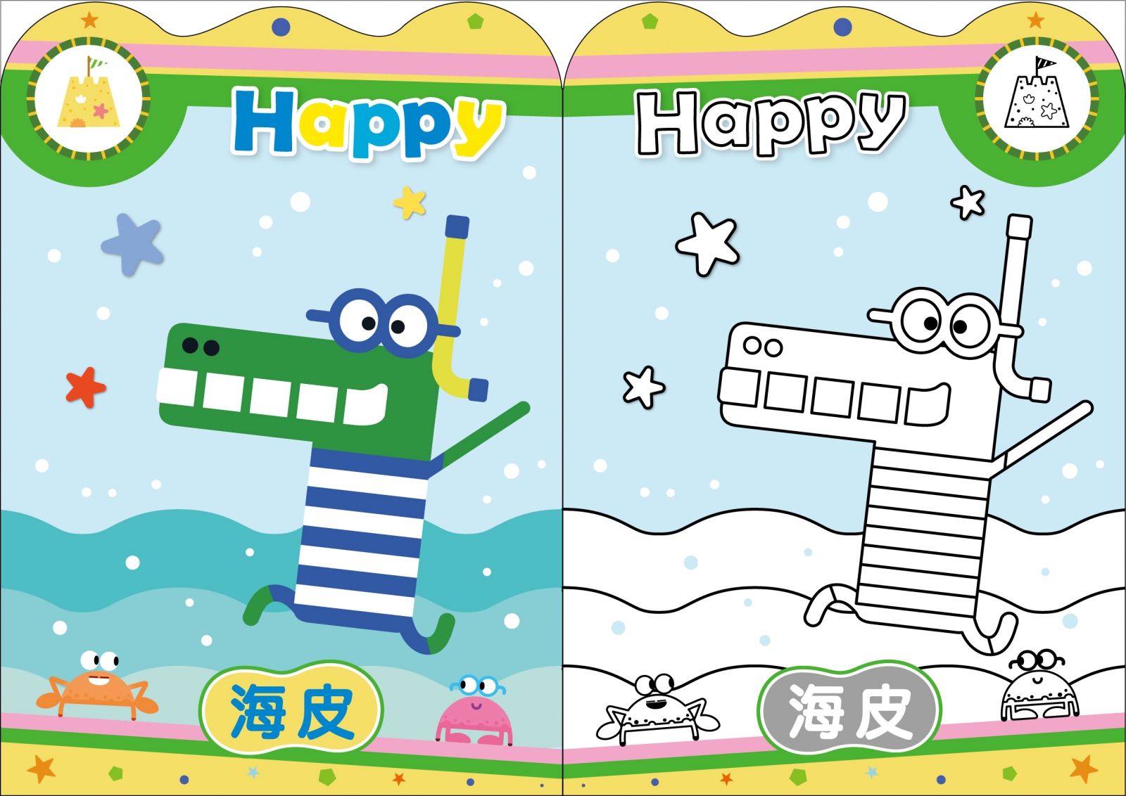 ◆阿奇幼幼園小畫家造型貼畫內容有9頁彩色頁與9頁著色頁,並附一張可愛角色貼紙。