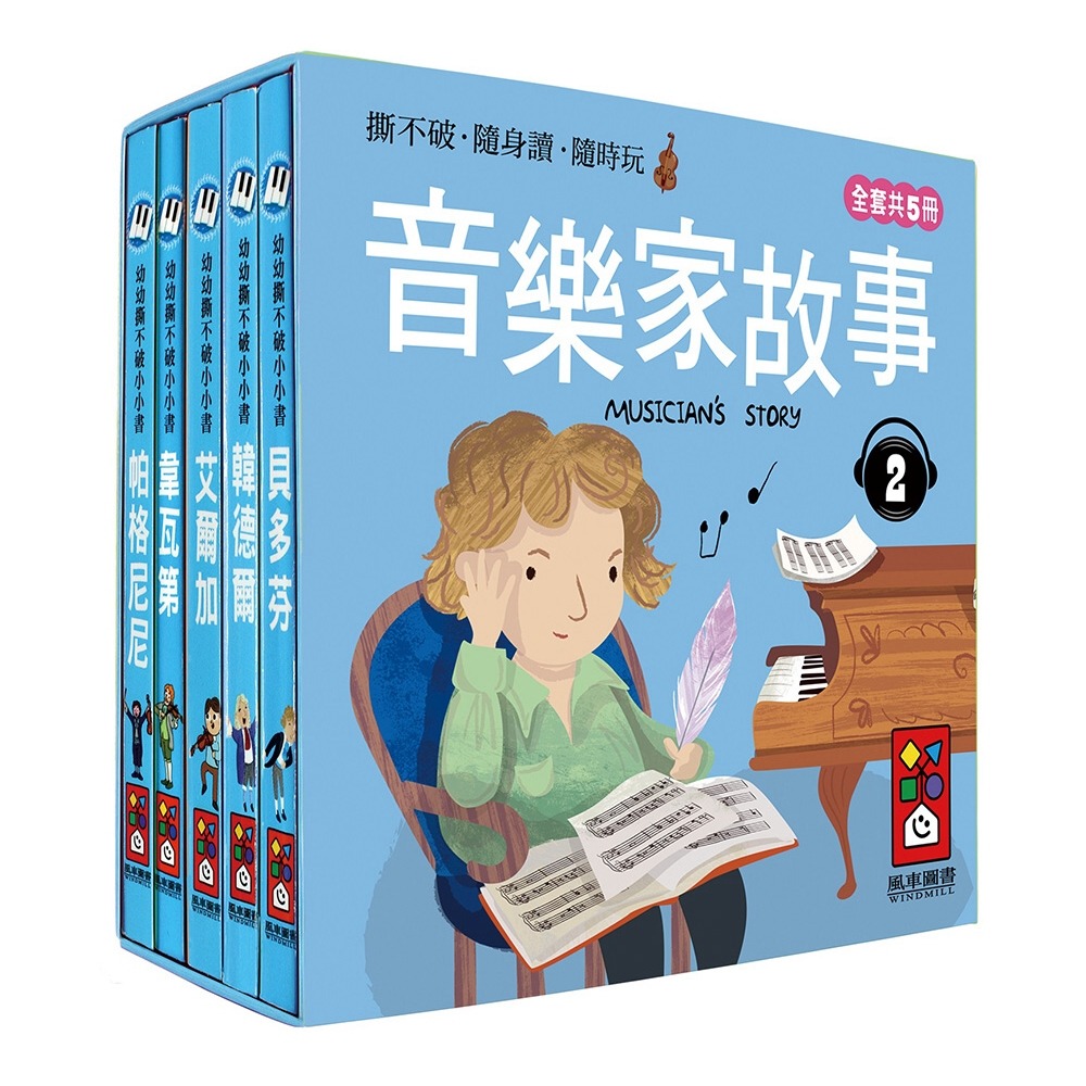 每套精選5位音樂家的故事,故事簡短卻意義深遠,寶寶閱讀音樂家的故事,搭配古典音樂,認識音樂家的人生經歷,可以讓寶寶想一想;每本書都會介紹音樂家的代表樂曲,搭配古典音樂,可以讓孩子跟著音樂的旋律,欣賞音樂家的作品,並學習欣賞音樂、啟蒙對音樂的興趣。