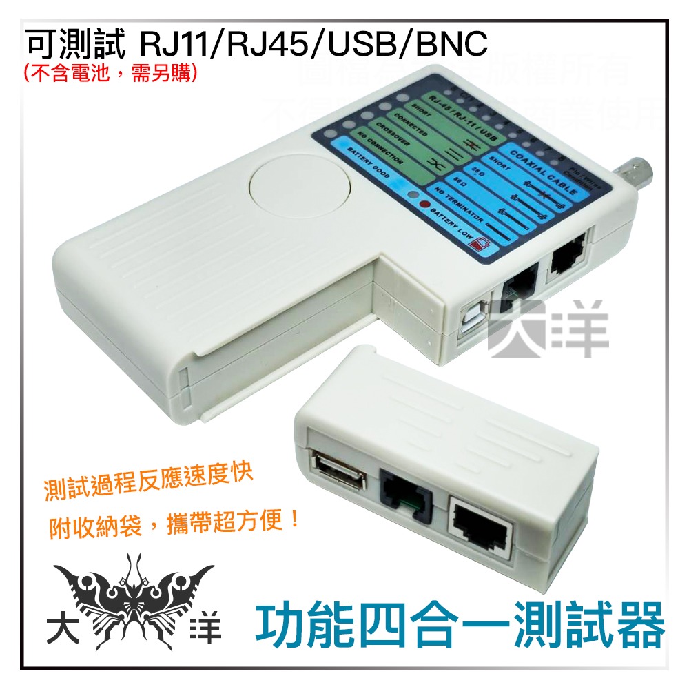 多功能四合一測試器 電話線 網路線 BNC同軸電纜 USB線 測試儀 測試器 K0396 (不含電池,需另購)