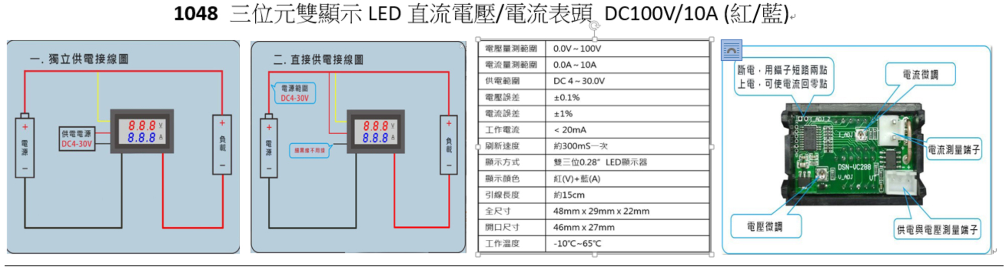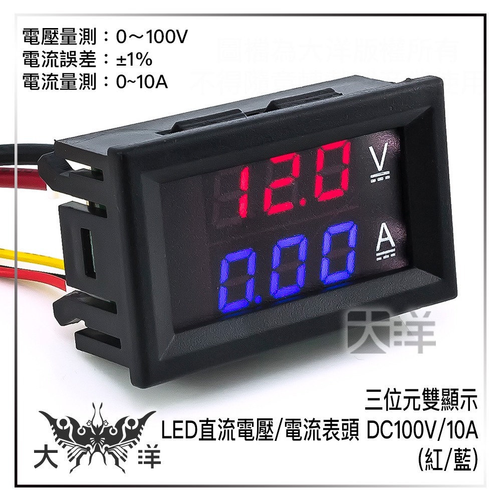 三位元雙顯示 LED直流電壓/電流表頭 DC100V/10A (紅/藍)