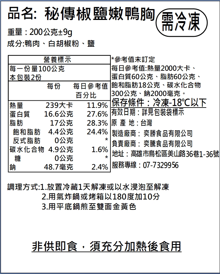 那你一定不能錯過我們的椒鹽嫩鴨胸!