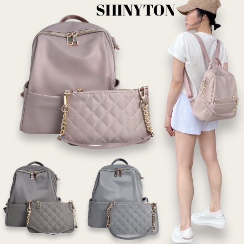 ❤️❤️❤️SHINYTON 厚磅尼龍雙肩後背包送菱格小包來囉⋯⋯很秀氣的後背包附可拆式的菱格小包、雙拉設計只能後背、穿洋裝搭配也很日系喔⋯⋯中型後背包、菱格小包可放小物、推出4色、超美的淺粉超美的淺灰大推喔⋯⋯😍😍😍😍😍