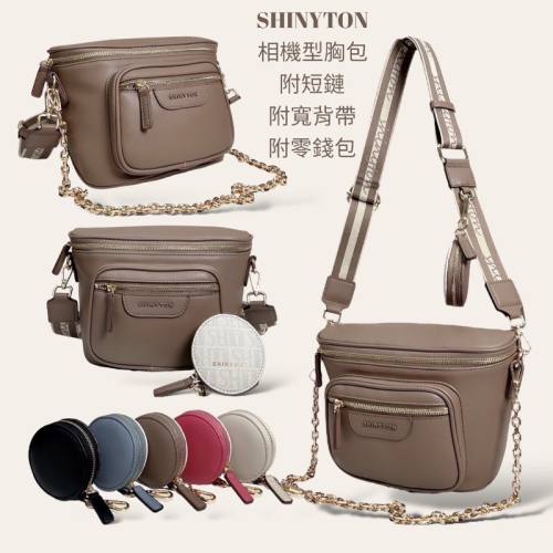 ❤️❤️❤️SHINYTON最新款仿牛皮紋相機型胸附短鏈、附寬背帶附零錢包、超時尚新款胸包、它算是中型胸包、基本的20公分長夾一定能放、配上SHINYTON 新款條紋舞曲織帶、出國出遊包、附美美的長鏈不管冬天穿多厚都能肩背、夏天讓鏈子垂下來超級時尚、也配上SHINYTON 條紋舞曲款背帶更加分、這是不用讓大大再加購直接附還附圓形老花雙面零錢包、闆娘準備5色今天美美上架囉⋯⋯❤️❤️❤️❤️❤️