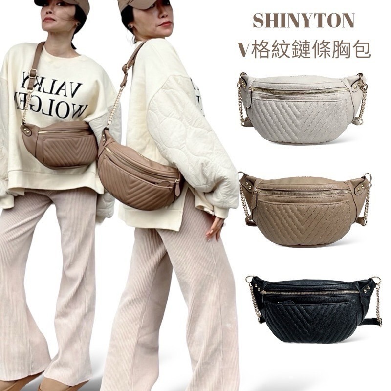 ❤️❤️❤️SHINYTON v格胸包這款是我們家賣最久的胸包一直都有客人再回購也再詢問的款式😍😍😍這款胸包的好處就是夾層多有V格刺繡跟鏈條帶的加持跟ㄧ般的胸包的感覺不同😘😘😘肩背時鏈條的裝飾穿洋裝也很搭喔🥰🥰🥰它是軟包不是硬挺的胸包背起來超時尚喔😘😘😘😘😘😘😘😘