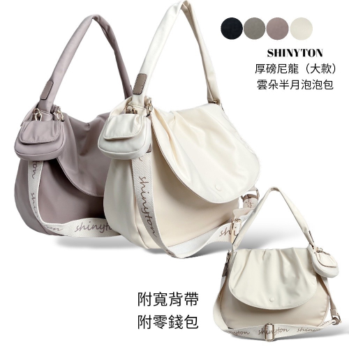⭐️SHINYTON 厚磅尼龍雲朵半月泡泡包附零錢附寬背帶💕💕💕