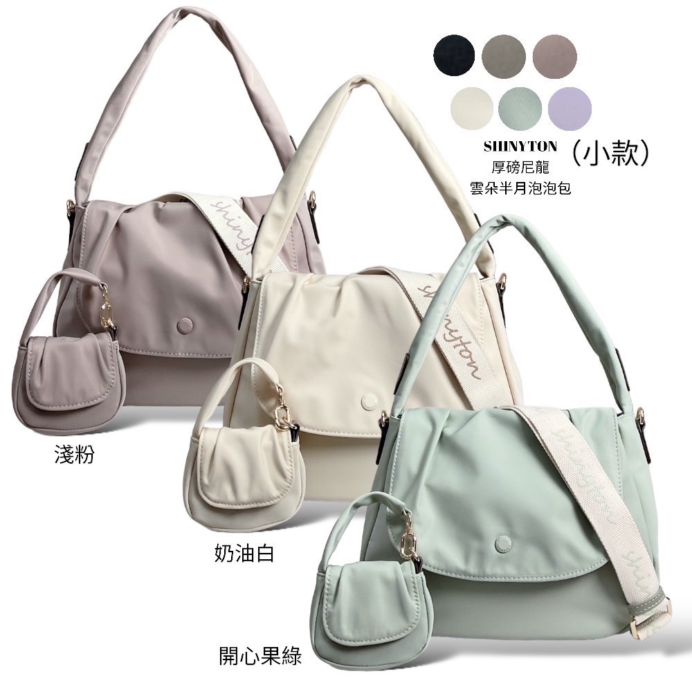 ❤️❤️❤️SHINYTON 再推出(小款)厚磅尼龍雲朵半月泡泡包來囉⋯⋯附零錢包附寬背帶,蓋頭是雲朵設計連小包也是是雲朵設計喔⋯⋯肩背是軟軟的肩背設計背起來超級舒服、整個包五金跟皮料都很少所以小款是0.5公斤,內部有兩個大插袋可分類放東西喔⋯⋯小款可放到11寸pro平板空間算大,共有6色今天美美上架囉⋯⋯😍😍😍😍😍