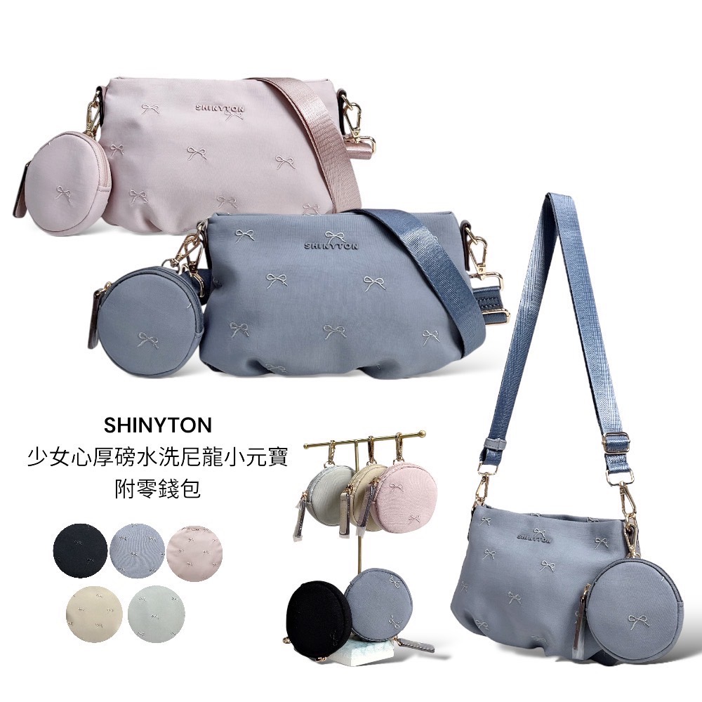 ⭐️SHINYTON 少女心刺繡蝴蝶結厚磅水洗尼龍小元寶包💕💕💕
