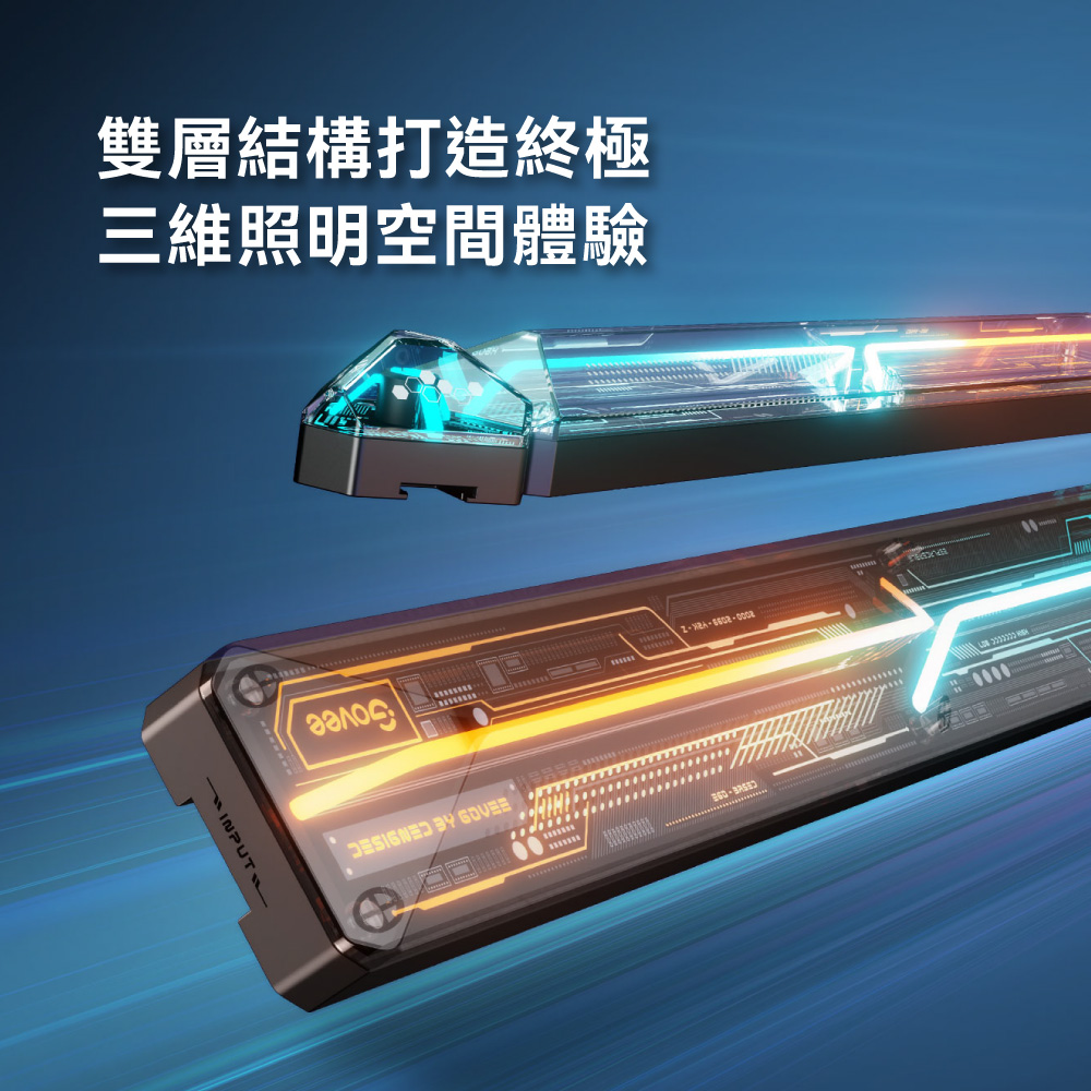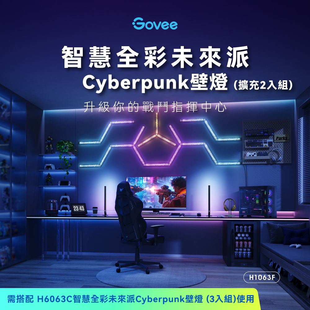 Govee 燈具結合高透光擴散面板與精緻電路板圖案,呈現出極具科技感的未來風格。無論是遊戲室、客廳或工作空間,都能帶來時尚且現代的燈光變革。