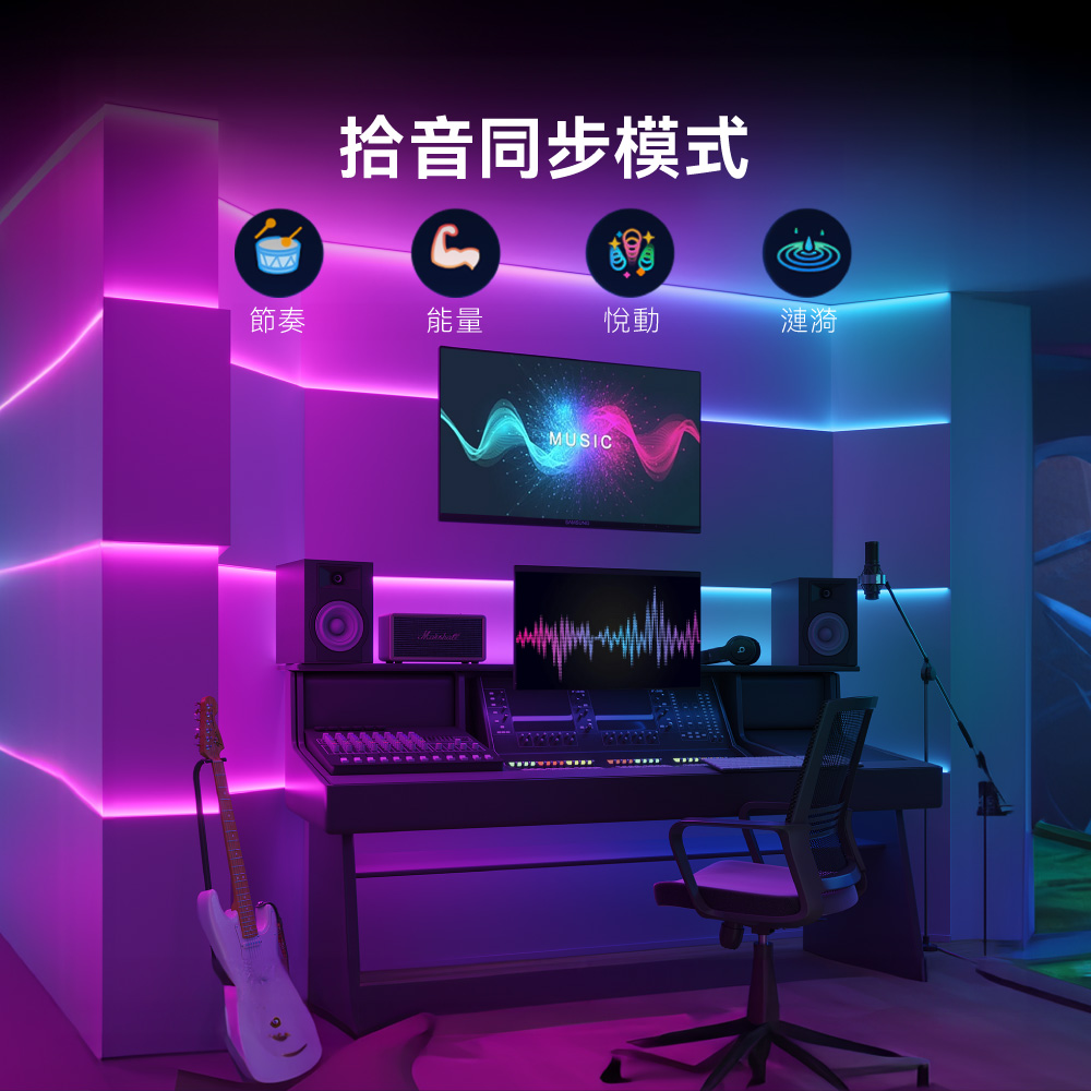☆ 音樂同步模式:內建超靈敏麥克風收音,能精準捕捉音樂節奏,燈光會隨音樂同步變化,擴增更多娛樂體驗。