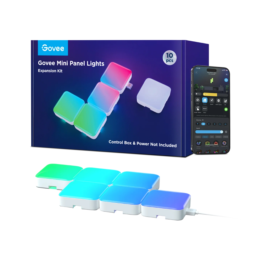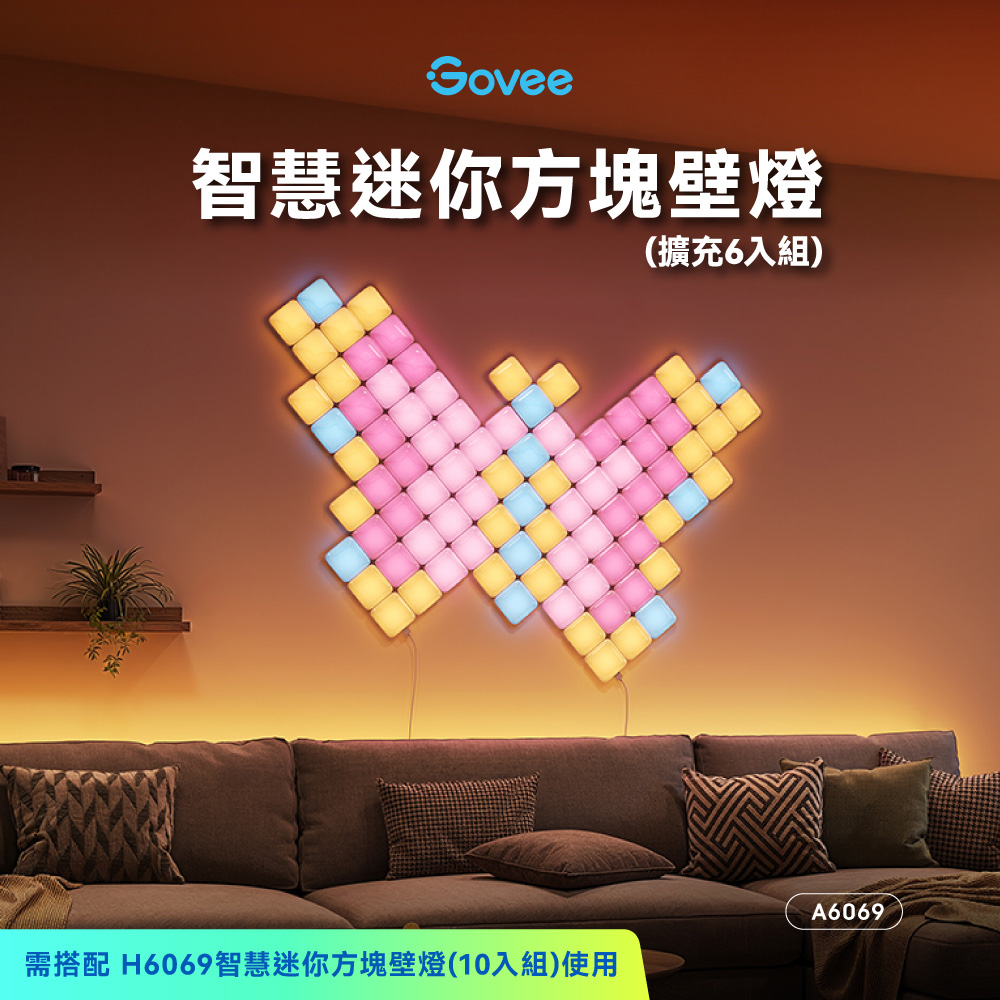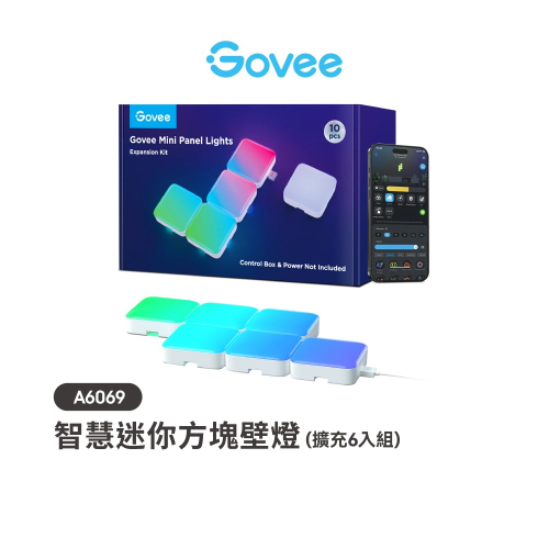 內含6個迷你燈板、6個連接件。(不含電源供應器與控制盒),需搭配主商品(H6069)使用,單個電源供應器可連接最多 70 片燈板。