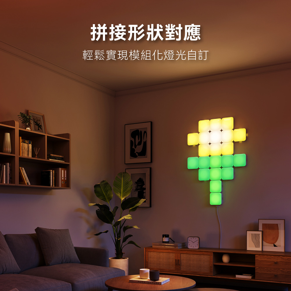 ☆ RGBIC 壁燈技術:採用 PC 透明燈罩 呈現 立體光效,搭載 RGBIC 晶片,讓每個燈板獨立顯示 豐富色彩。