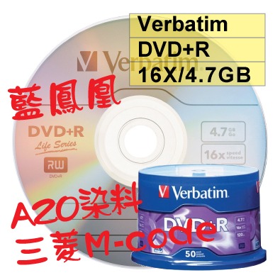 Verbatim 藍鳯凰AZO染料 DVD+R 16X 4.7GB燒錄片
