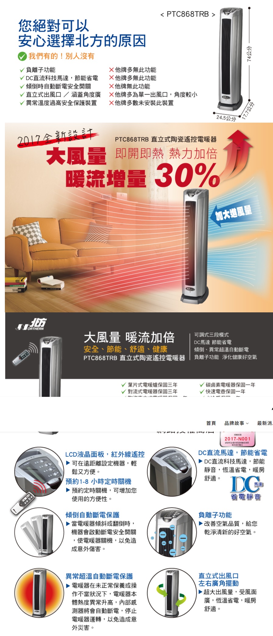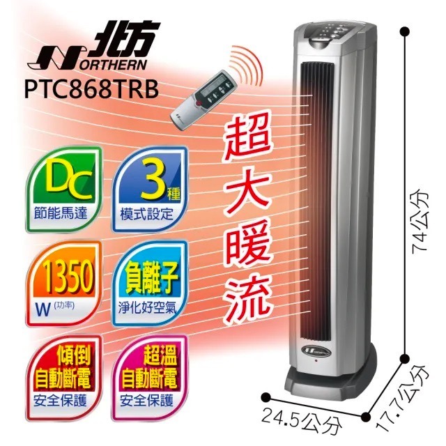 北方 直立式陶瓷遙控電暖器 PTC868TRB