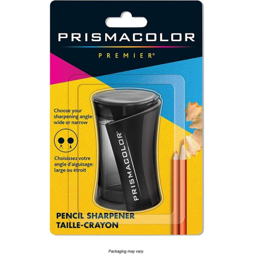 將您的Prismacolor彩色鉛筆銳化到最佳狀態 兩個不同的刀片,均由優質磨刀鋼製成 選擇一個廣角點進行覆蓋,或選擇一個細點進行銳化處理 半透明的黑色機身可讓您確切地看到卷筆刀何時裝滿 專為Prismacolor Premier鉛筆設計
