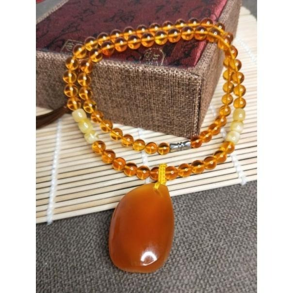 (現貨) 天然波羅的海琥珀蜜蠟 深礦料紅蠟吊墜項鍊 帶原皮紅蠟項鍊 非二代 非塑料 非壓制