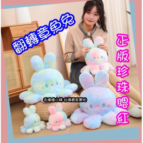 台灣現貨❤️抖音小紅書50公分正版翻轉珍珠章魚兔娃娃抱枕 翻轉章魚兔