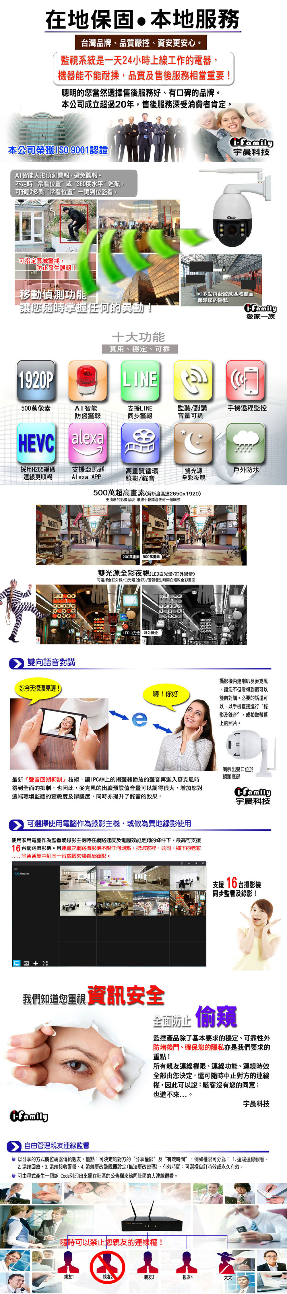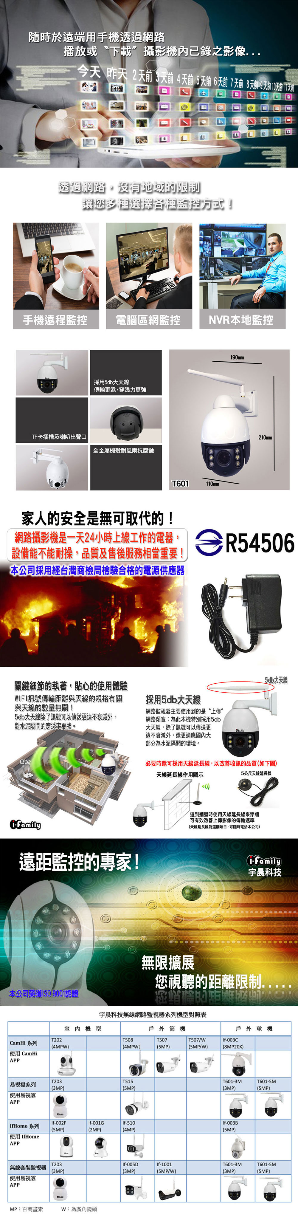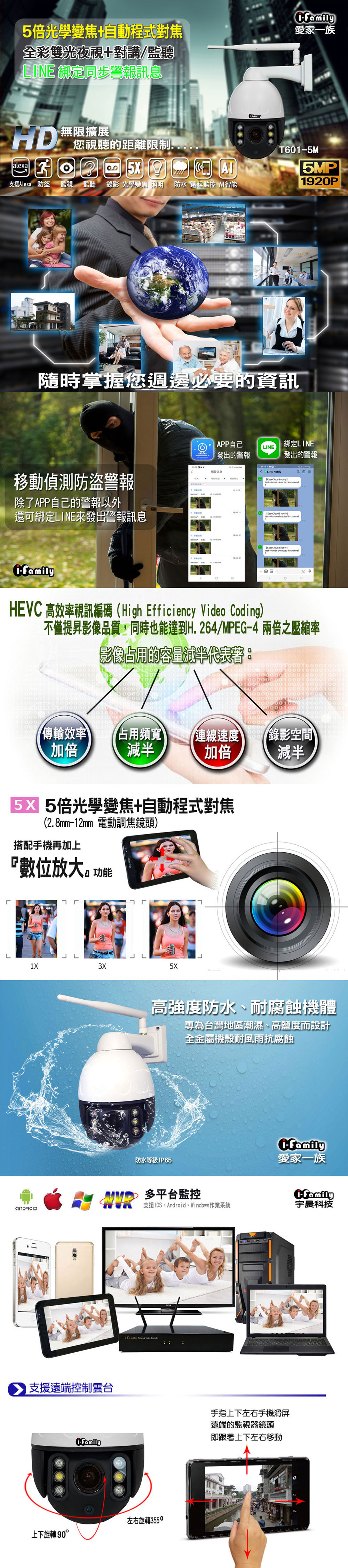 ifamily T601 兩年保固 五百萬畫素 防水型 金屬機殼 全彩雙光夜視 5倍光學變焦 無線網路監視器 攝影機