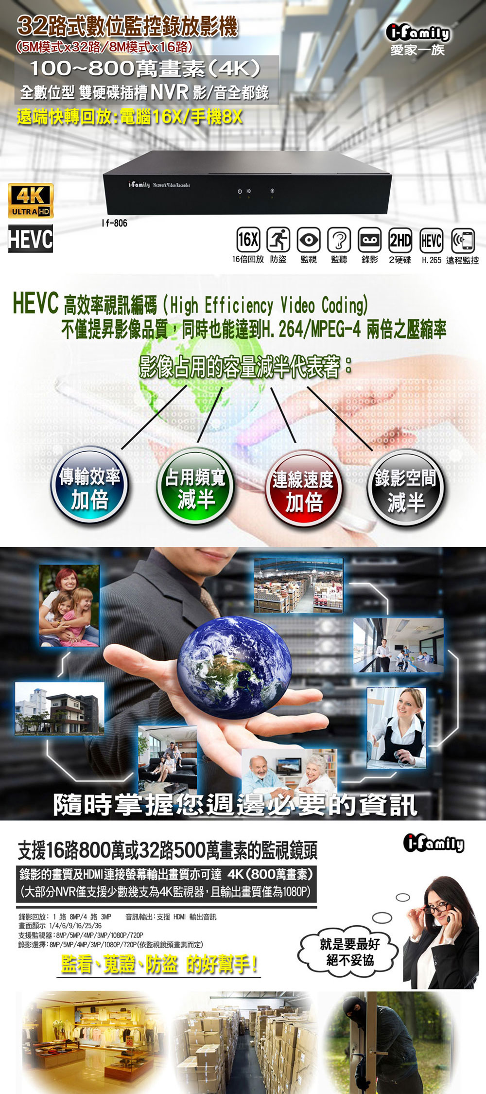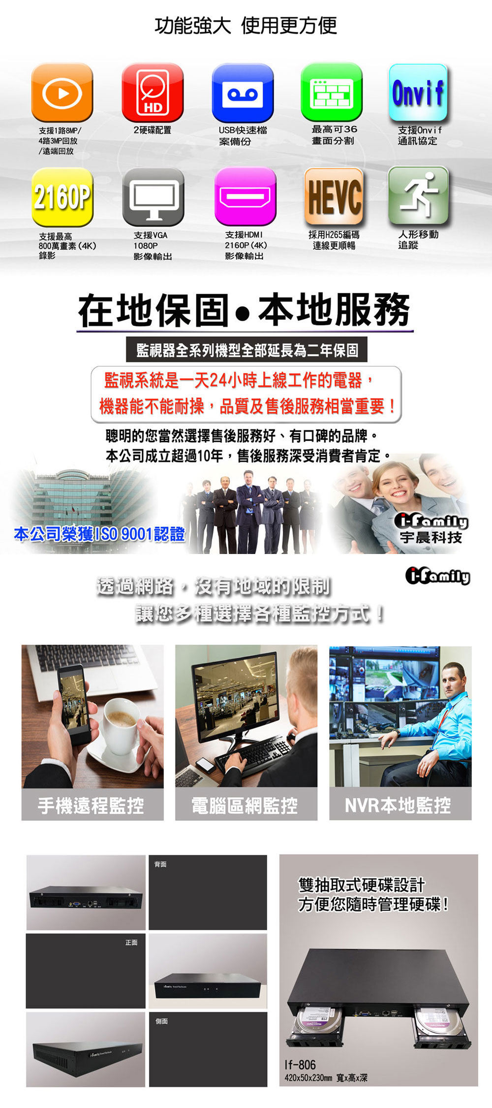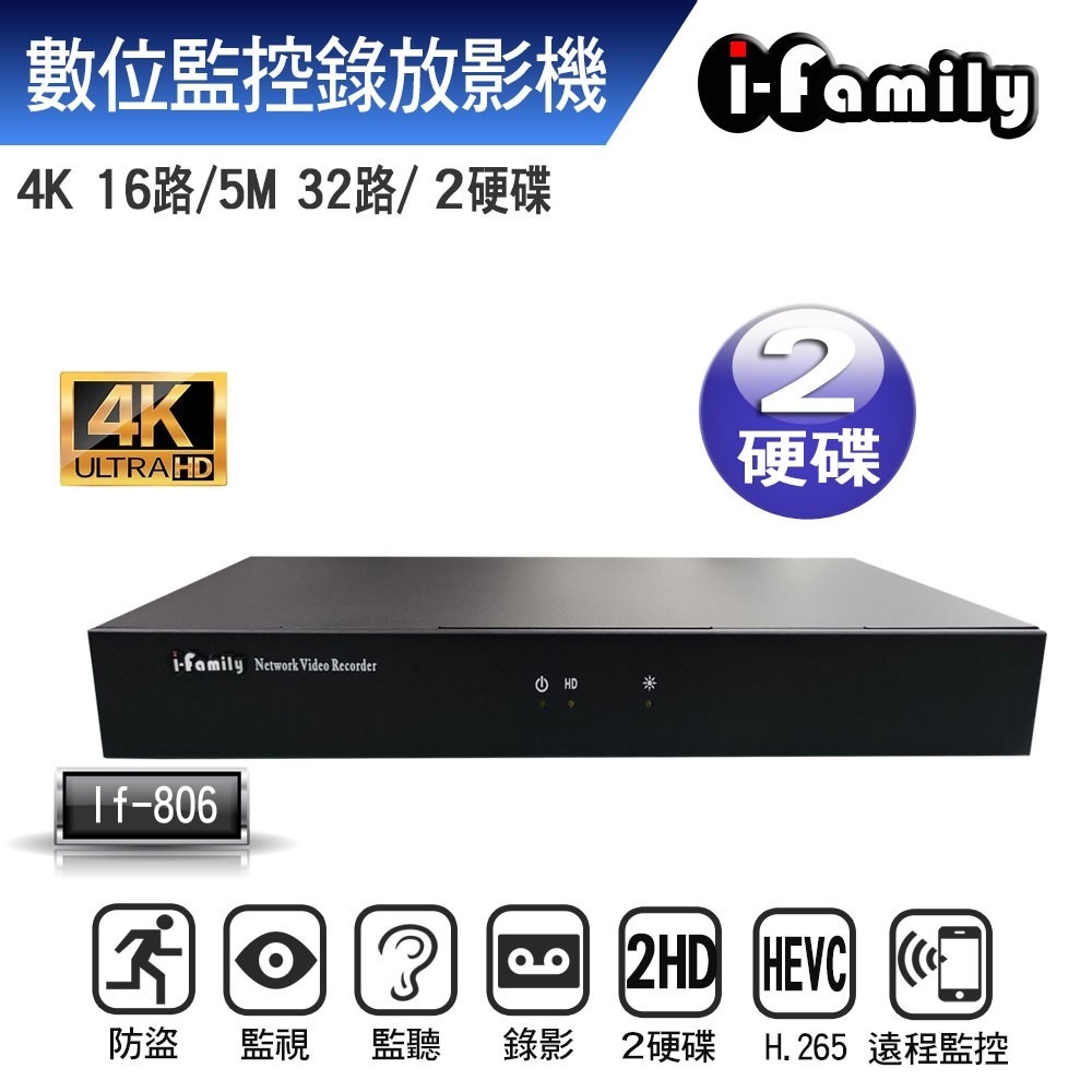 ifamily IF-806 兩年保固 POE專用 32路式 支援雙硬碟 NVR 數位監控 錄放影機