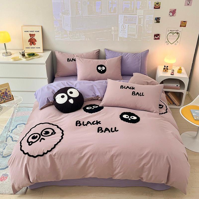 吾二家居 純棉 紫煤球 小棕球 黑煤球 單人 可愛 床包組 雙人床包 加大雙人 ins風 ikea風 台灣出貨