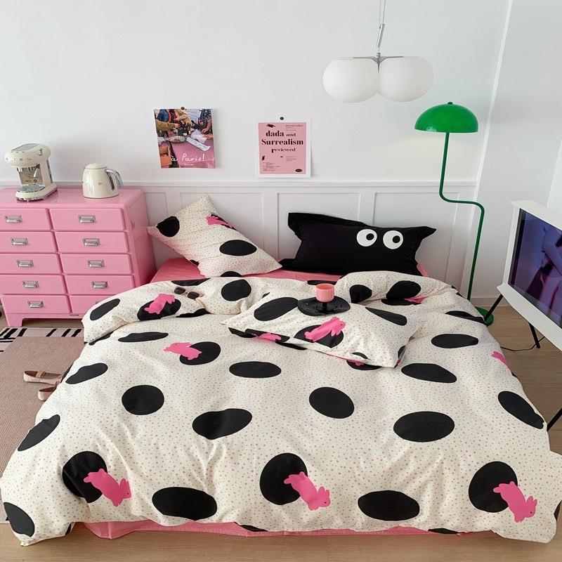 吾二家居 純棉 波點兔 玫紅 單人 可愛 床包組 雙人床包 加大雙人 ins風 ikea風 台灣出貨