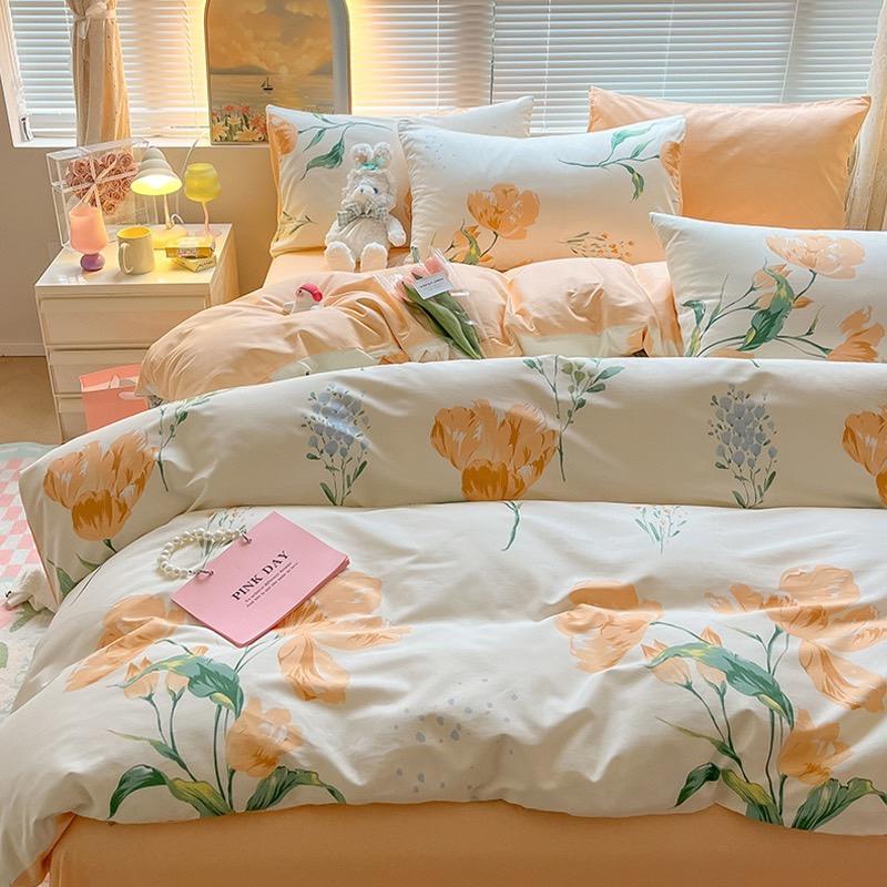 吾二家居 純棉 盛開花萱 單人 可愛 床包組 雙人床包 加大雙人 ins風 ikea風 台灣出貨