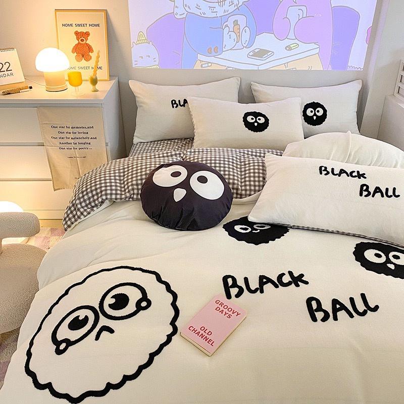 吾二家居● 台灣出貨 法蘭絨 黑煤球 格子 可愛 冬天保暖 牛奶絨 冬季床包組 雙人床包 加大雙人 可愛風 單人床包