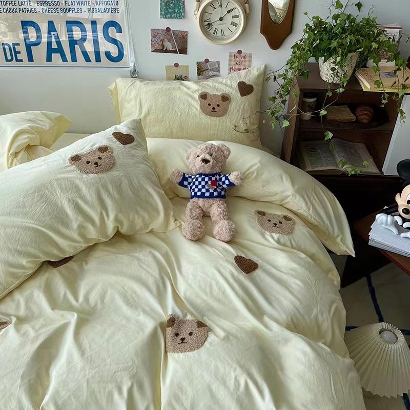 吾二家居 聚酯纖維 小熊黃 單人 可愛 床包組 雙人床包 加大雙人 ins風 ikea風 台灣出貨